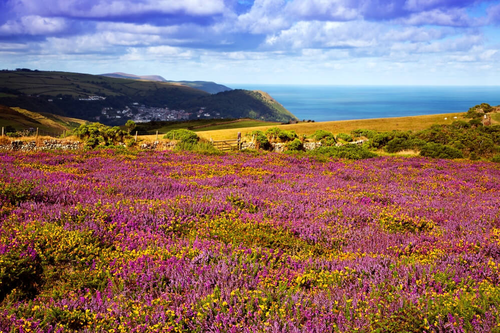 The soaring moorland coastline between Porlock and Lynton, where Somerset meets Devon, has some of the most breath-taking views on Exmoor. Walk the South West Coastal Path up to County Gate and gaze across the Bristol Channel at the Welsh hills beyond or inland at the moorland marching into the distance. You could choose to dip down to the coast for more sheltered but steeper woodland walks or remain up high on the windswept moors.